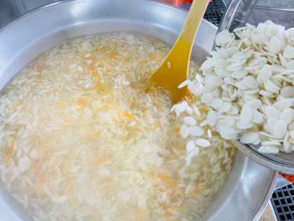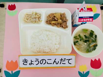 豚肉のコチジャンいため、トック、もやしのナムル、ごはん、牛乳