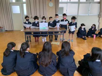 今日の3・4時間目に1年生と6年生が紙芝居交流会をしました。1年生は「つるのおんがえし」などの物語を紙芝居にして、練習の成果を6年生に聞いてもらいました。6年生は優しいまなざしで静かに物語をきいていました。授業の終わりに6年生からは「とてもハキハキと読めていた」や「声がよく出ていた」などの感想が多くありました。とてもすばらしい交流会でした。