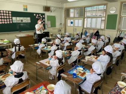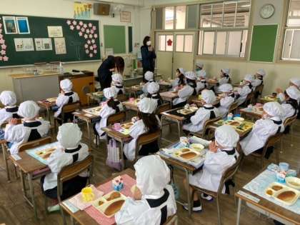 みんな今日の献立のハンバーグやコーンスープを美味しそうに食べていました。