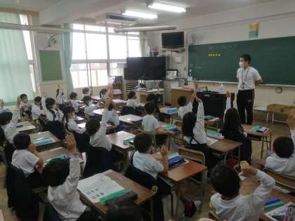 みんなで大きな声で復唱してばっちりできていました。