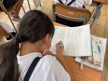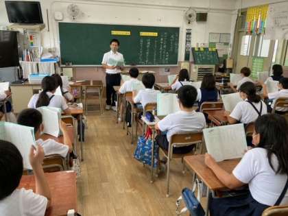 5時間目は研究授業でした。たくさんの先生が見守る中、国語科の物語文の学習に取り組みました。登場人物の気持ちを読み取り、互いに発表し合うことができました。6年生らしい深い読み取りができている子どもが多く成長が感じられました。