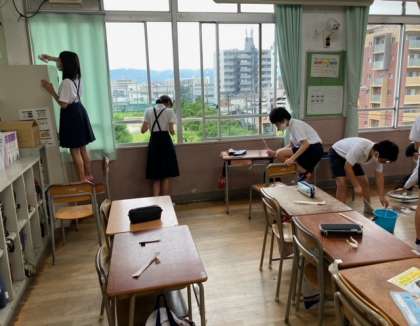 6年生の家庭科では、「クリーン作戦」と題し、教室の掃除をしました。普段あまり掃除をしていないところを丁寧に掃除しました。