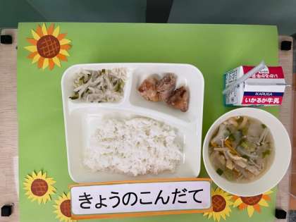 本日の給食 7/19 公開日 2021/07/19 更新日 2021/07/19 お知らせ 本日の給食です。 鶏肉のしょうゆマヨネーズ焼き、切干しだいこんのゆずの香あえ、五目汁、ごはん、牛乳 いいね(0)