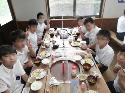 林間学習最終日の朝です。起床時は雨で朝のつどいが中止になりましたが、もちつき、散策の活動は出来そうです。