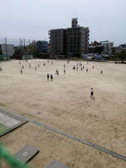 ダッシュ!ダッーシュ!ダッシュ!熱中症に気をつけながら、子どもたちは元気に運動場を走り回って楽しんでいます。体を動かして気分をスッキリさせるといいね!