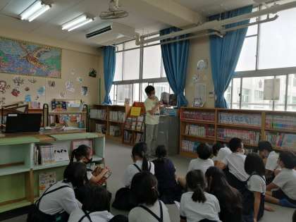 毎週木曜日に、学校図書館補助員さんが学校に来て、子どもたちに読み聞かせ等していただいております。