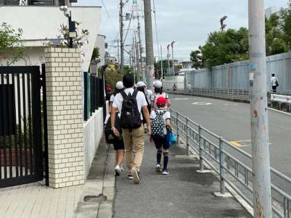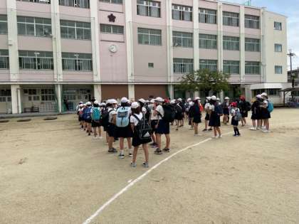 本日は5年生の遠足です。服部緑地に向けて学校を出発しました。