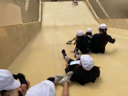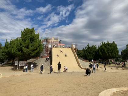 午後からは大泉緑地名物の大滑り台です。キャーという歓声が公園に響いていました。みんな大興奮です。