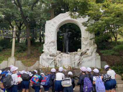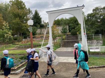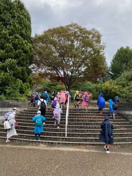 いろいろな国の庭園を見学しました。途中で少し雨が降ったのでカッパを着て見学しました。