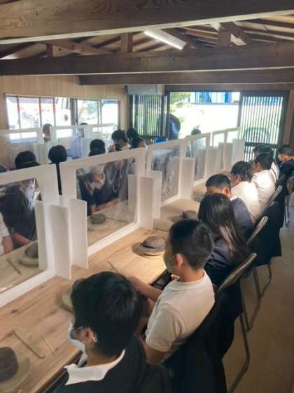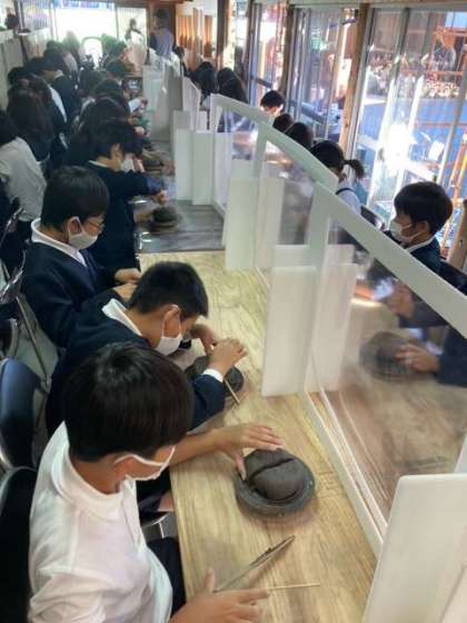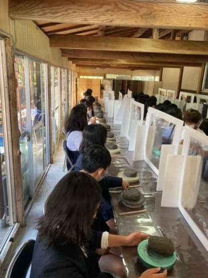 陶芸にチャレンジです。粘土をこねて形を整えてそれぞれ個性あふれる作品ができました。