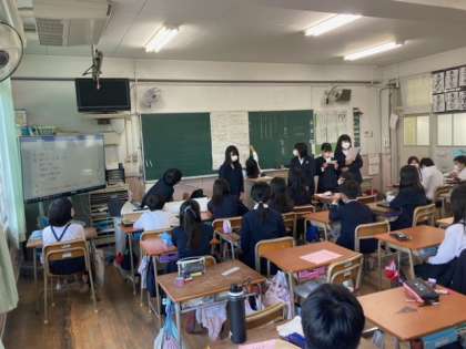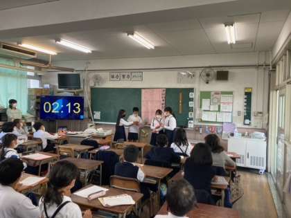 5年生は総合的な学習の時間に、平和学習を進めています。今日はそれぞれの班で調べたことを学級で発表しました。