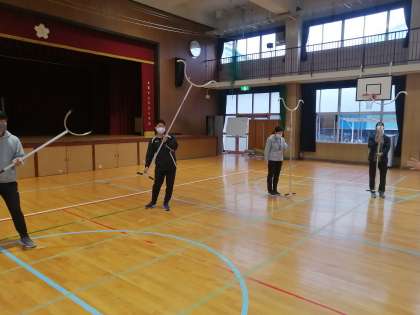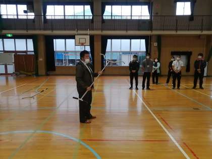 生野警察の方に来校していただいて、防犯対策のさすまた研修を行いました。