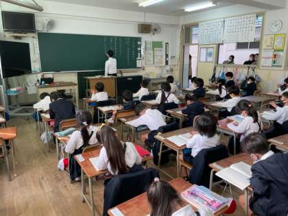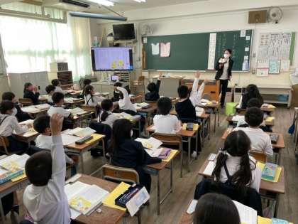 1年1組は国語の授業「おとうとねずみチロ」、2組は「ことばあそび」の学習をしました。