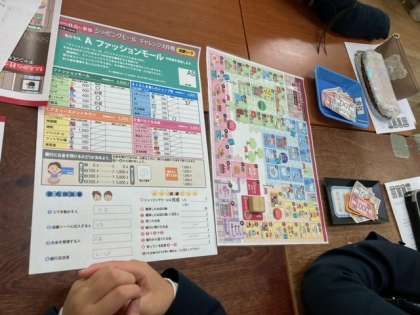 5年生はすごろくゲームを通して、経済の仕組みについて学びました。日本経済教育センターの方からの説明を受けながらゲームを進める中で、社会では予想外の出来事が起こること、お店や会社の仕事には常に費用がかかること、私たちの生活は選択の連続で、何を選ぶかによって結果は大きく変わることなどを学びました、