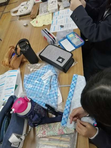 家庭科クラブは、縫物をしていました。慣れない針や糸をつかってポケットティッシュ入れをつくっていました。上手に縫えるといいね!