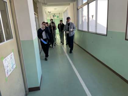 2時間目に行われた避難訓練(不審者対応)のようすです。今回の避難訓練は、刃物を持った不審者が校内に侵入したという想定で行いました。生野警察署生活安全課の方に犯人役をしていただき、実際にこのようなことが起きた場合どうすればよいかを確認しました。大阪教育大学付属池田小学校の事件から20年以上がたちましたが、決して忘れてはならない事件です。