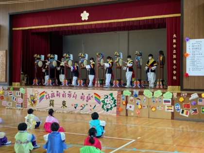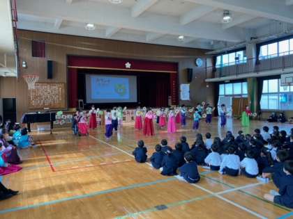 今年の国際理解集会では、英語クラブの発表やベトナム、中国につながりのある子どもたちからの発表、韓国朝鮮の踊りや楽器の演奏などバラエティに富んだ内容となりました。外国の文化についてのクイズなどもありとても盛り上がりました。