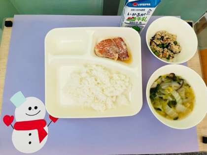 あかうおのレモンじょうゆかけ、うすくず汁、高野どうふのいり煮、ごはん、牛乳