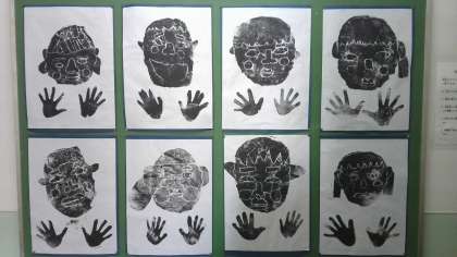 初めて紙版画に挑戦しましたよ。大きな口は、マスク生活の中でとても新鮮味がありました。また、手のひらは本人の手形をとって版画にしたそうです。いい思い出になりますね。