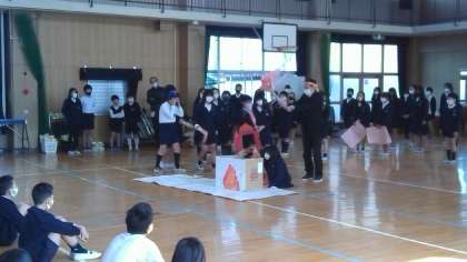 5年生の「贈る言葉」のようすです。小学校入学から現在までの思い出を劇でまとめました。