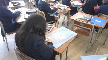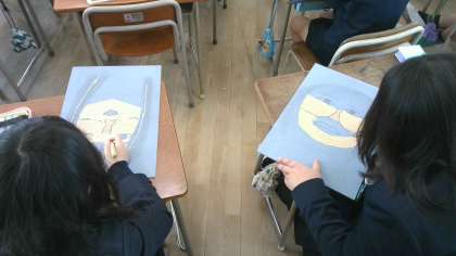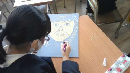 4年生は最後の図画工作科「版画」に取り組んでいます。タブレットをつかって顔写真を撮り、その画像を見ながら自分の顔を板に描き彫刻しています。子どもたちのマスクをとった素顔を久しぶりに見た気がします。