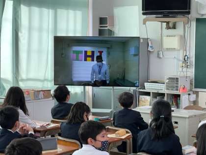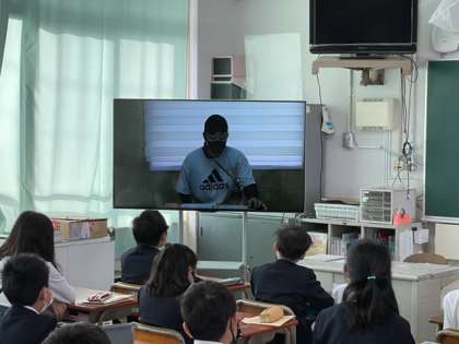 今日の児童朝会では、校長先生のお話のあと、サポーターの先生などの紹介がありました。