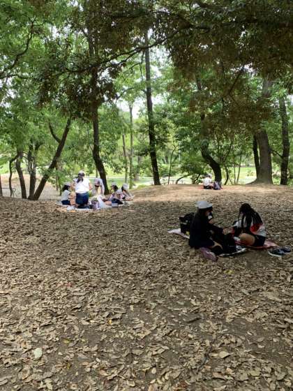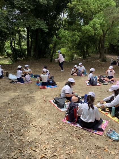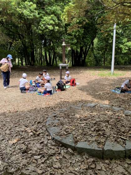 できるだけ日陰に入って距離をとってお弁当時間です。こういったところで食べるお弁当は格段におしいんですよね〜