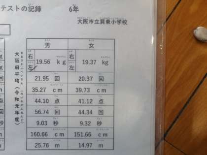 6年生の大阪府の平均がありました。
