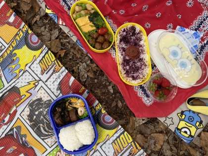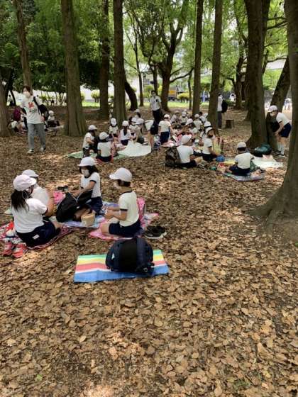お弁当の時間になりました。3年生は一度延期になったので今日は2回目のお弁当ですね。保護者のみなさまありがとうございました。最高の天気の下で食べるお弁当は一段とおいしいんだろうな〜