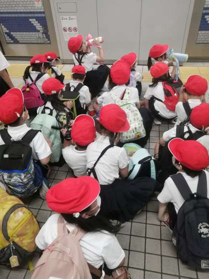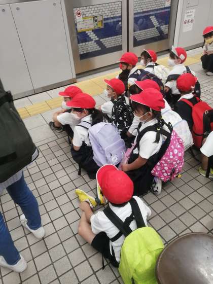 電車待ち 初めて電車に乗る一年生もいてます。