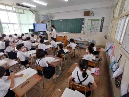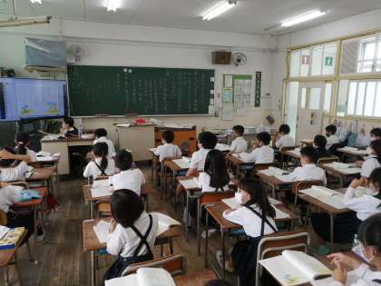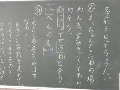 登場する「えっちゃん」「きつね」に分かれて音読します。