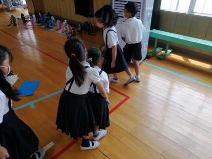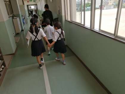 2年生がちょっと大きいお兄さん・お姉さんとなって学校の中(校内)を仲良く手をつないで探検しました。頼もしい2年生でした。