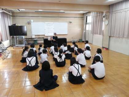 今日は、あじさいクラブの方(生野図書館の人)に来校していただき、本の読み聞かせがありました。