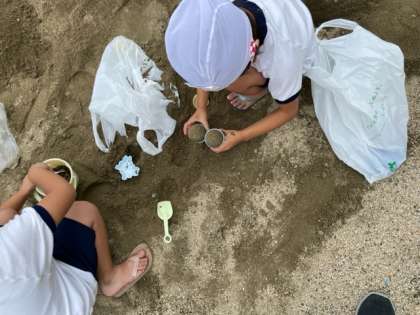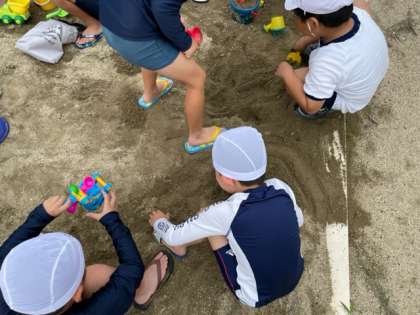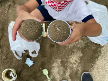 今日の2時間目、1年生の砂遊びのようすです。