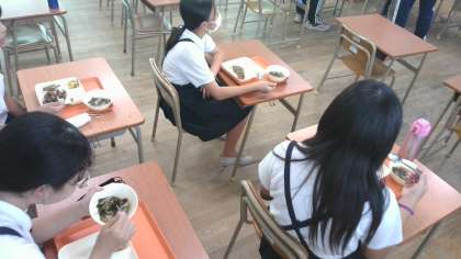 6年生の給食委員会が学校給食献立コンクールの試作をしました。