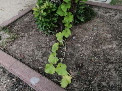 ふと花壇を見てみると一本の つる みたいなものが見えました。