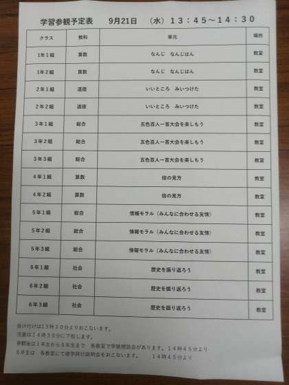 各学年の予定をホームページ配布文書の欄にもUPしております。