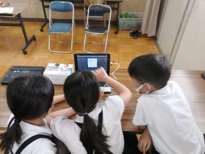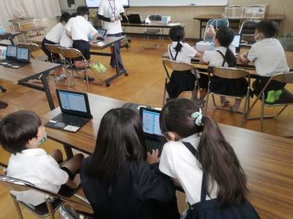 初めて学習するプログラミング教室でしたが、3クラスとも子どもたちは、ノリノリで活動しました。