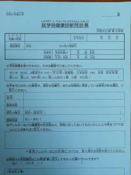 明日は就学時健康診断があります。