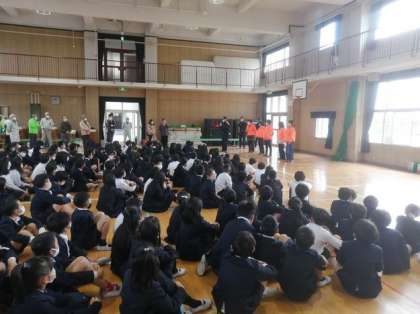 体験が終わると子どもたちは町会長さんの話や生野区役所の方の話を聞きました。