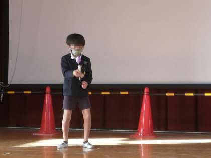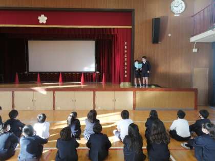 2学期のお楽しみ会を4年生が講堂でやっていました。