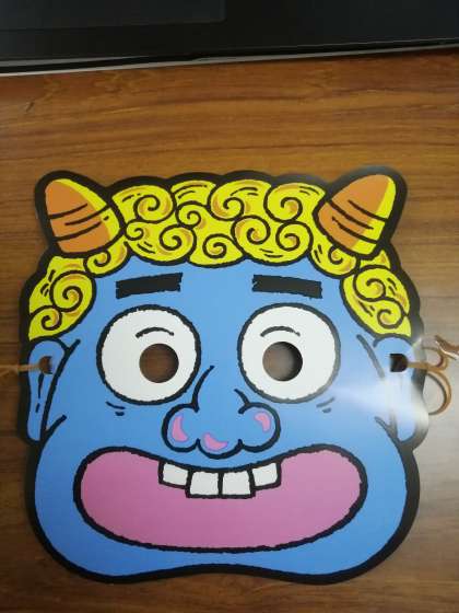 写真のお面をかぶって休み時間に運動場でて見ました。