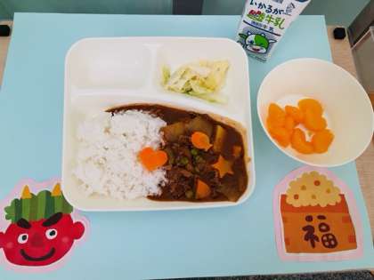 ハヤシライス、キャベツのバジル風味サラダ、みかん(缶)、牛乳