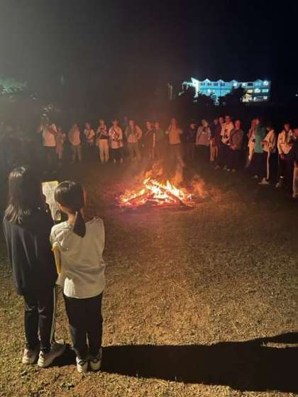 楽しかったキャンプファイヤーもあっという間に終わってしまいました。 今から宿舎に戻ります!