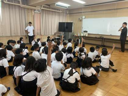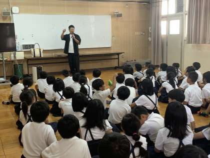 3年生では、出前授業「梅ちゃん先生の英会話」がありました。吉本の芸人さんによる英語ということで子どもたちは興味深々の様子でした。