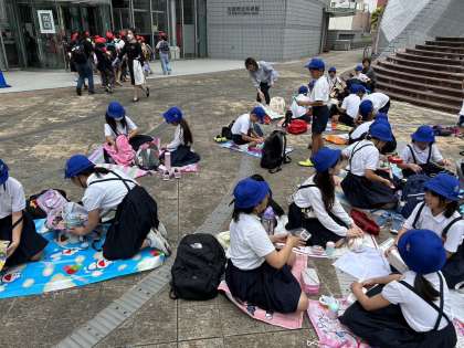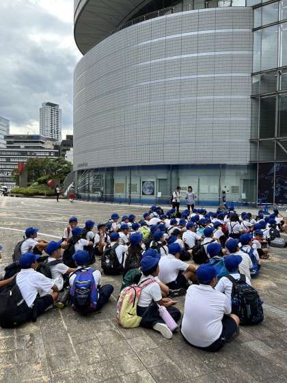 4年生は、社会見学「市立科学館」に行きました。天候にめぐまれ、お弁当を広場で食べることができました。午後からは、プラネタリウムの見学を予定しています。