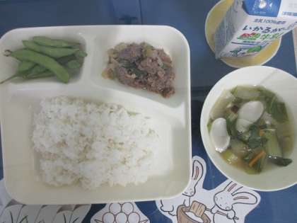 ごはん、牛乳、プルコギ、トック、えだまめ