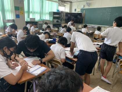 4年生算数の学習の様子です。3ケタ÷2ケタの割り算に取り組んでいます。