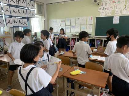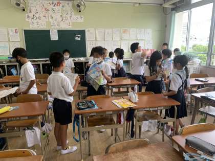 今日は、英語の外国人の先生が来られる日でした。どの子も楽しそうに英語を使っていました。