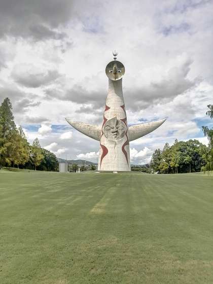 遊んだ帰りに太陽の塔の前で記念撮影しました。 これから帰りまーす!
